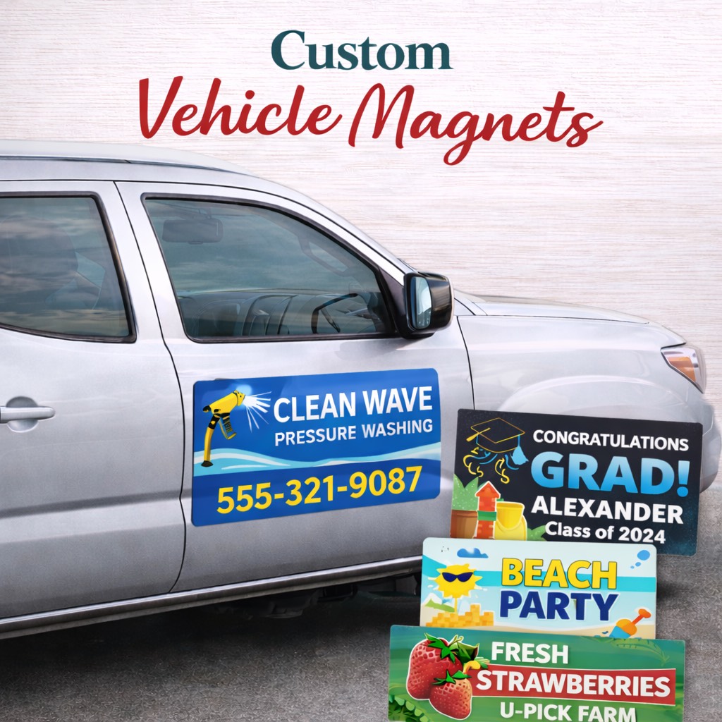 Our Custom Vehicle Magnets turn your vehicle into effective mobile advertising for your brand. Designed for unrivaled versatility and outstanding quality, these magnets display crisp graphics and vibrant color while remaining easy to apply, remove, and reposition.